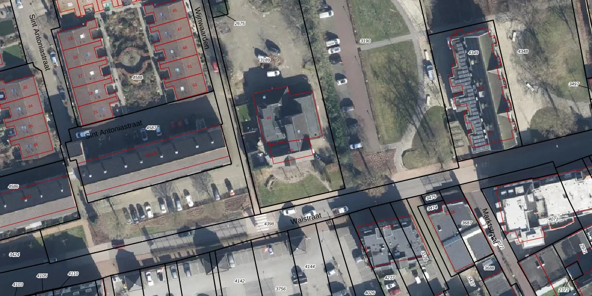 Het perceel waarop Walstraat 30 staat heeft een oppervlakte van 2120 m². Dit is een zeer groot perceel. De perceeloppervlakte wordt geregistreerd door het Kadaster. Gedetailleerde informatie over de maten van dit perceel kunt u vinden in het rapport Kadastrale kaart met maatvoering van Walstraat 30.