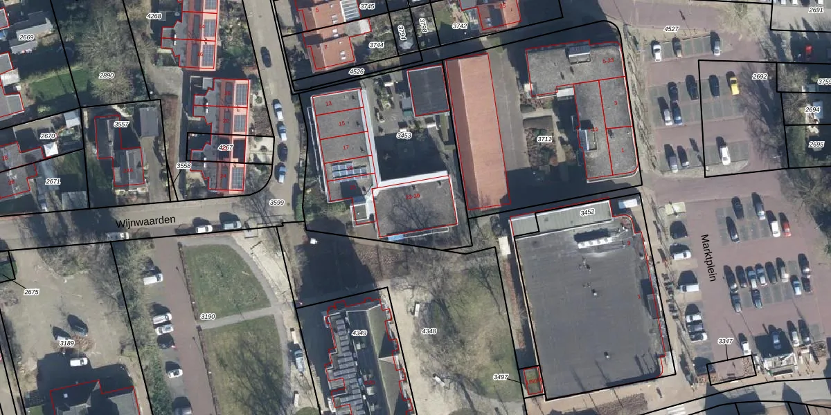 Het perceel waarop Wijnwaarden 31 staat heeft een oppervlakte van 1477 m². Dit is een zeer groot perceel. De perceeloppervlakte wordt geregistreerd door het Kadaster. Gedetailleerde informatie over de maten van dit perceel kunt u vinden in het rapport Kadastrale kaart met maatvoering van Wijnwaarden 31.
