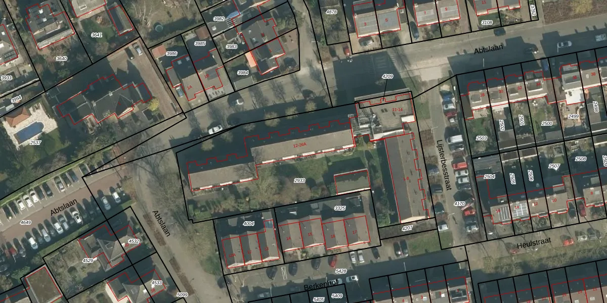 Het perceel waarop Abtslaan 22-A staat heeft een oppervlakte van 2416 m². Dit is een zeer groot perceel. De perceeloppervlakte wordt geregistreerd door het Kadaster. Gedetailleerde informatie over de maten van dit perceel kunt u vinden in het rapport Kadastrale kaart met maatvoering van Abtslaan 22-A.