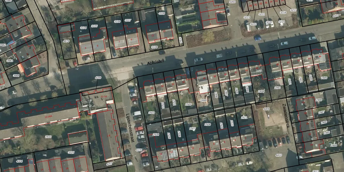 Abtslaan 32 is gelegen op kadastraal perceel THD00G2501. Deze kadastrale aanduiding is uniek en wordt gebruikt door het Kadaster om eigendomsrechten en andere zakelijke rechten vast te leggen. Het perceel maakt onderdeel uit van de kadastrale gemeente Terheijden.