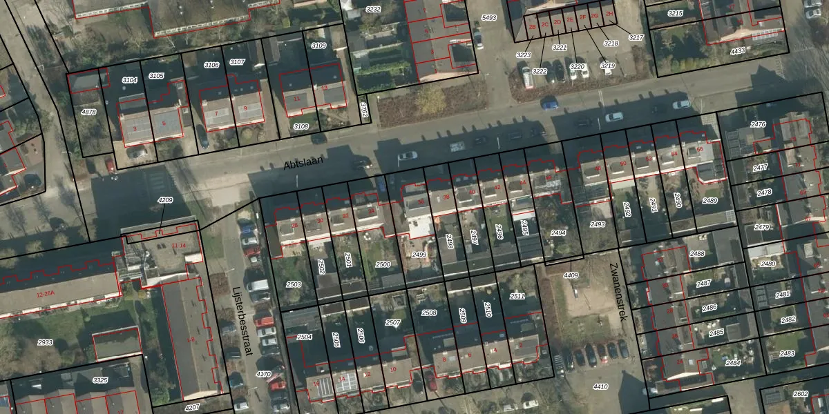 Het perceel waarop Abtslaan 36 staat heeft een oppervlakte van 259 m². Dit is een middelgroot perceel. De perceeloppervlakte wordt geregistreerd door het Kadaster. Gedetailleerde informatie over de maten van dit perceel kunt u vinden in het rapport Kadastrale kaart met maatvoering van Abtslaan 36.
