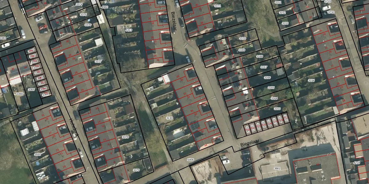Het perceel waarop Biezelaar 32 staat heeft een oppervlakte van 1359 m². Dit is een zeer groot perceel. De perceeloppervlakte wordt geregistreerd door het Kadaster. Gedetailleerde informatie over de maten van dit perceel kunt u vinden in het rapport Kadastrale kaart met maatvoering van Biezelaar 32.