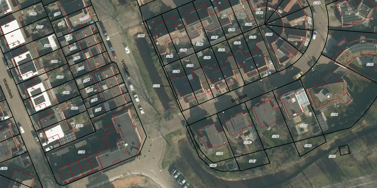 Het perceel waarop Bosbies 1 staat heeft een oppervlakte van 235 m². Dit is een middelgroot perceel. De perceeloppervlakte wordt geregistreerd door het Kadaster. Gedetailleerde informatie over de maten van dit perceel kunt u vinden in het rapport Kadastrale kaart met maatvoering van Bosbies 1.