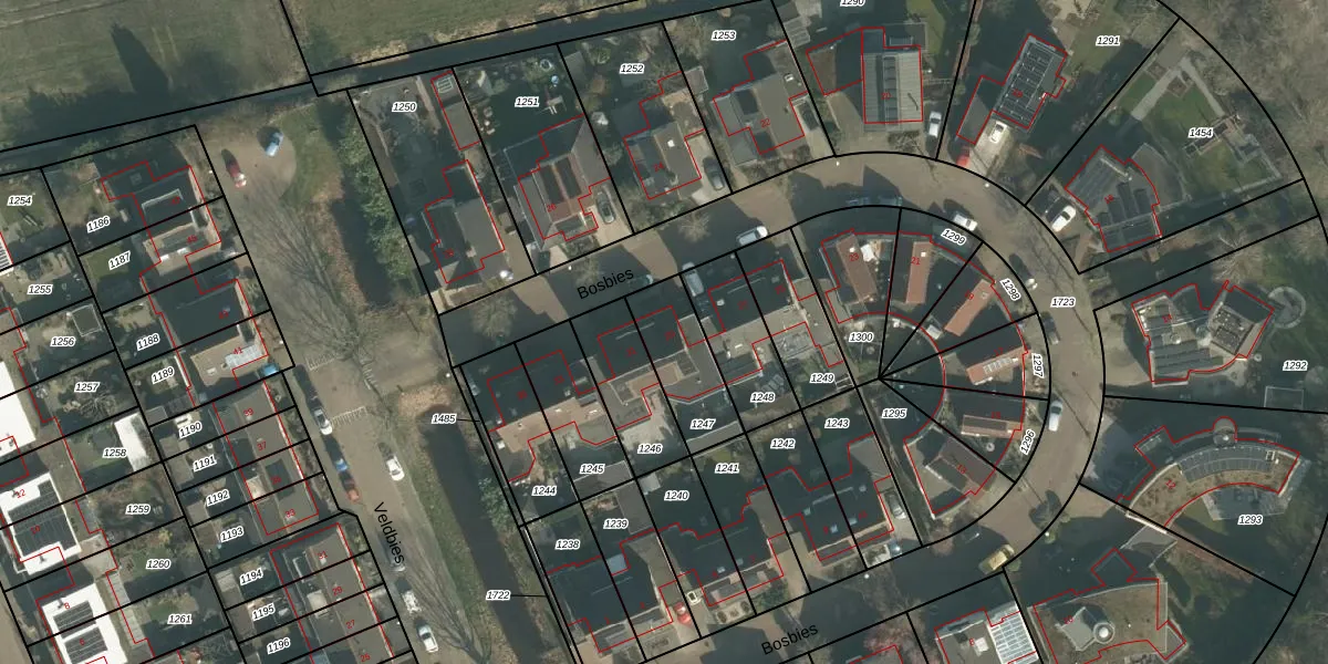 Het perceel waarop Bosbies 29 staat heeft een oppervlakte van 233 m². Dit is een middelgroot perceel. De perceeloppervlakte wordt geregistreerd door het Kadaster. Gedetailleerde informatie over de maten van dit perceel kunt u vinden in het rapport Kadastrale kaart met maatvoering van Bosbies 29.