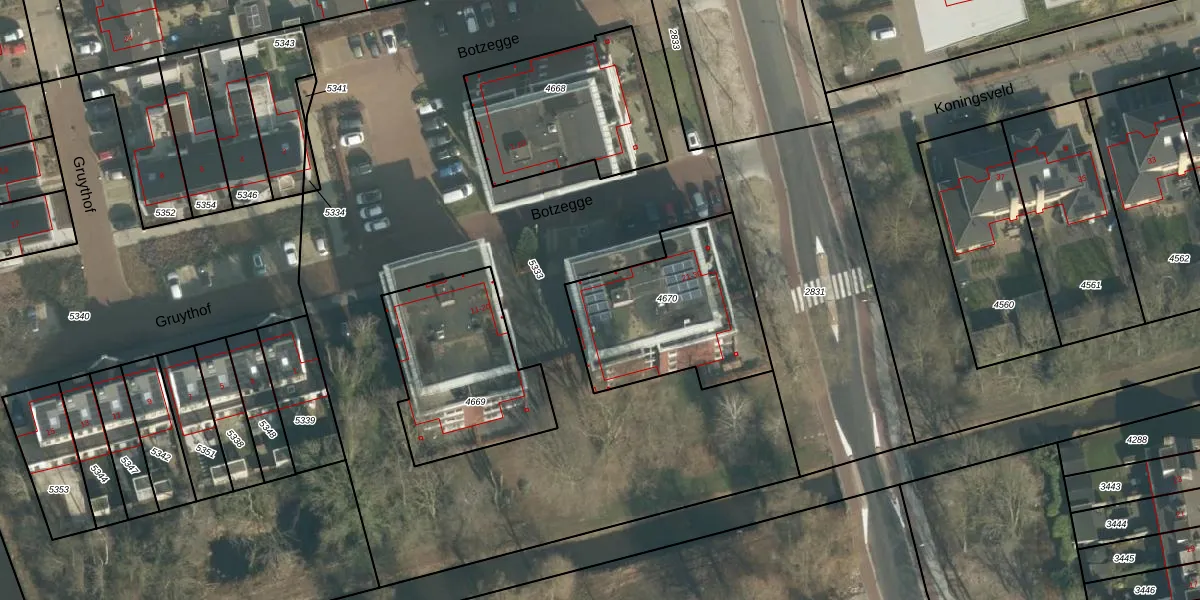 Het perceel waarop Botzegge 21 staat heeft een oppervlakte van 669 m². Dit is een groot perceel. De perceeloppervlakte wordt geregistreerd door het Kadaster. Gedetailleerde informatie over de maten van dit perceel kunt u vinden in het rapport Kadastrale kaart met maatvoering van Botzegge 21.
