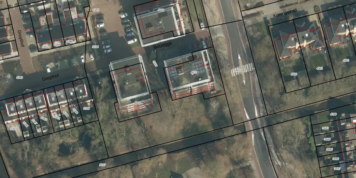Het perceel waarop Botzegge 27 staat heeft een oppervlakte van 669 m². Dit is een groot perceel. De perceeloppervlakte wordt geregistreerd door het Kadaster. Gedetailleerde informatie over de maten van dit perceel kunt u vinden in het rapport Kadastrale kaart met maatvoering van Botzegge 27.