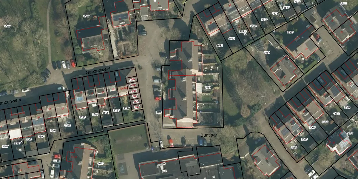 Het perceel waarop Buntlaar 5 staat heeft een oppervlakte van 1628 m². Dit is een zeer groot perceel. De perceeloppervlakte wordt geregistreerd door het Kadaster. Gedetailleerde informatie over de maten van dit perceel kunt u vinden in het rapport Kadastrale kaart met maatvoering van Buntlaar 5.