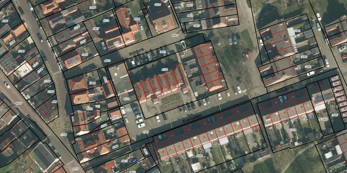 Evenakker 14 is gelegen op kadastraal perceel THD00G4130. Deze kadastrale aanduiding is uniek en wordt gebruikt door het Kadaster om eigendomsrechten en andere zakelijke rechten vast te leggen. Het perceel maakt onderdeel uit van de kadastrale gemeente Terheijden.
