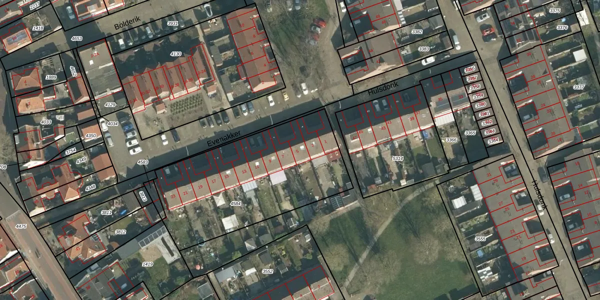 Evenakker 5 is gelegen op kadastraal perceel THD00G4584. Deze kadastrale aanduiding is uniek en wordt gebruikt door het Kadaster om eigendomsrechten en andere zakelijke rechten vast te leggen. Het perceel maakt onderdeel uit van de kadastrale gemeente Terheijden.