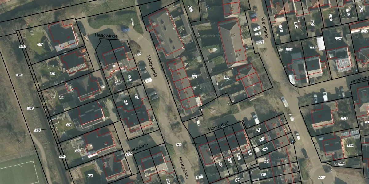 Haagwinde 12 is gelegen op kadastraal perceel THD00I988. Deze kadastrale aanduiding is uniek en wordt gebruikt door het Kadaster om eigendomsrechten en andere zakelijke rechten vast te leggen. Het perceel maakt onderdeel uit van de kadastrale gemeente Terheijden.