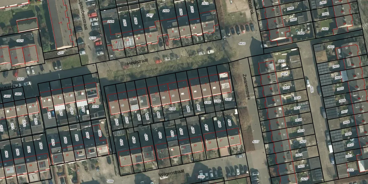 Heulstraat 9 is gelegen op kadastraal perceel THD00G4488. Deze kadastrale aanduiding is uniek en wordt gebruikt door het Kadaster om eigendomsrechten en andere zakelijke rechten vast te leggen. Het perceel maakt onderdeel uit van de kadastrale gemeente Terheijden.