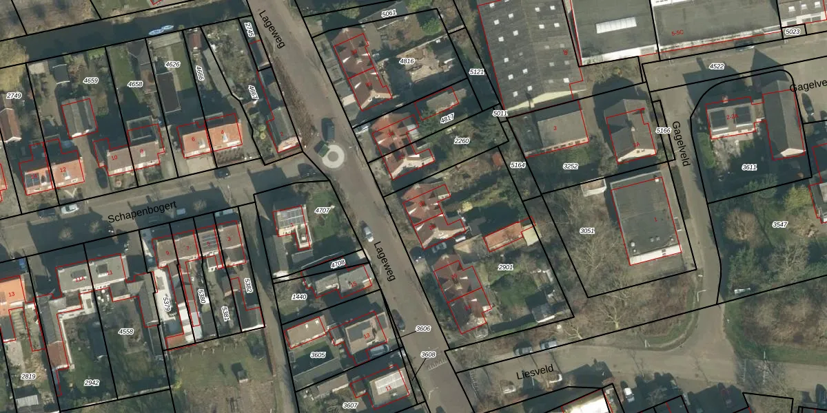 Lageweg 30 is gelegen op kadastraal perceel THD00G2901. Deze kadastrale aanduiding is uniek en wordt gebruikt door het Kadaster om eigendomsrechten en andere zakelijke rechten vast te leggen. Het perceel maakt onderdeel uit van de kadastrale gemeente Terheijden.
