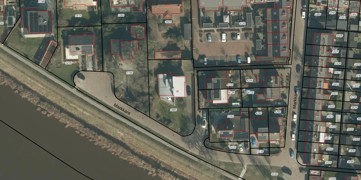 Het perceel waarop Markkant 16 staat heeft een oppervlakte van 984 m². Dit is een groot perceel. De perceeloppervlakte wordt geregistreerd door het Kadaster. Gedetailleerde informatie over de maten van dit perceel kunt u vinden in het rapport Kadastrale kaart met maatvoering van Markkant 16.