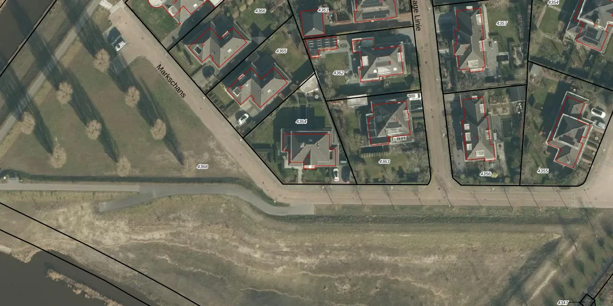 Het perceel waarop Markschans 8 staat heeft een oppervlakte van 757 m². Dit is een groot perceel. De perceeloppervlakte wordt geregistreerd door het Kadaster. Gedetailleerde informatie over de maten van dit perceel kunt u vinden in het rapport Kadastrale kaart met maatvoering van Markschans 8.