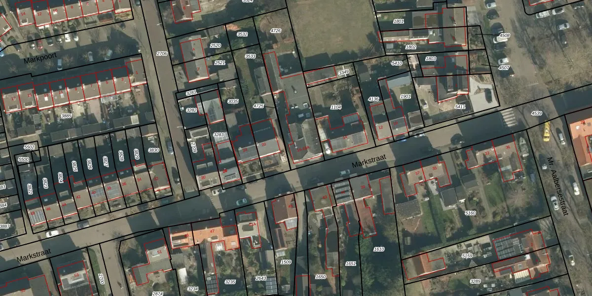 Het perceel waarop Markstraat 18-A staat heeft een oppervlakte van 626 m². Dit is een groot perceel. De perceeloppervlakte wordt geregistreerd door het Kadaster. Gedetailleerde informatie over de maten van dit perceel kunt u vinden in het rapport Kadastrale kaart met maatvoering van Markstraat 18-A.