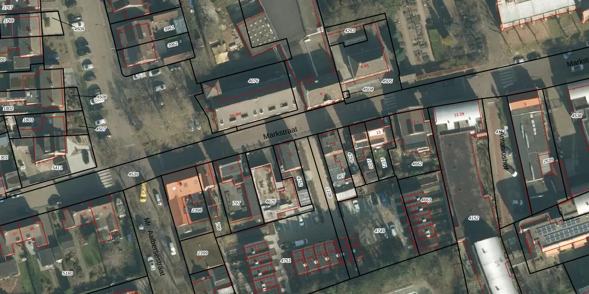Markstraat 21 is gelegen op kadastraal perceel THD00G4752. Deze kadastrale aanduiding is uniek en wordt gebruikt door het Kadaster om eigendomsrechten en andere zakelijke rechten vast te leggen. Het perceel maakt onderdeel uit van de kadastrale gemeente Terheijden.