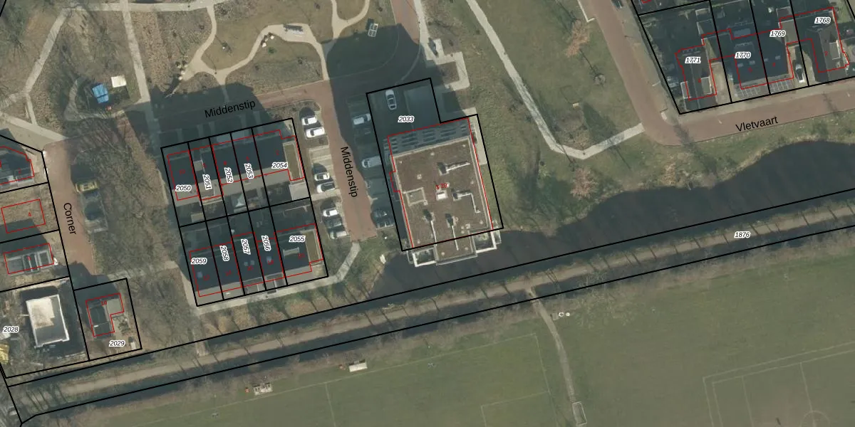 Het perceel waarop Middenstip 19 staat heeft een oppervlakte van 825 m². Dit is een groot perceel. De perceeloppervlakte wordt geregistreerd door het Kadaster. Gedetailleerde informatie over de maten van dit perceel kunt u vinden in het rapport Kadastrale kaart met maatvoering van Middenstip 19.