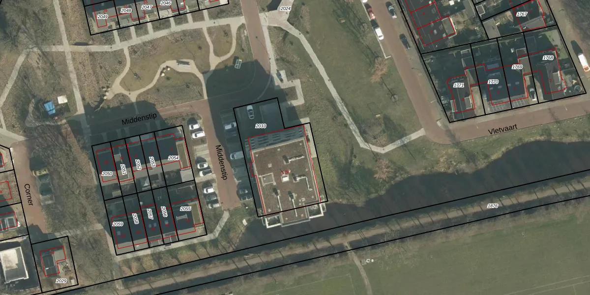 Het perceel waarop Middenstip 23 staat heeft een oppervlakte van 825 m². Dit is een groot perceel. De perceeloppervlakte wordt geregistreerd door het Kadaster. Gedetailleerde informatie over de maten van dit perceel kunt u vinden in het rapport Kadastrale kaart met maatvoering van Middenstip 23.