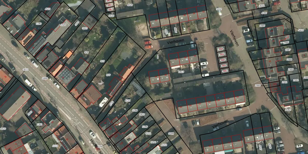 Vierhoven 44 is gelegen op kadastraal perceel THD00G2813. Deze kadastrale aanduiding is uniek en wordt gebruikt door het Kadaster om eigendomsrechten en andere zakelijke rechten vast te leggen. Het perceel maakt onderdeel uit van de kadastrale gemeente Terheijden.