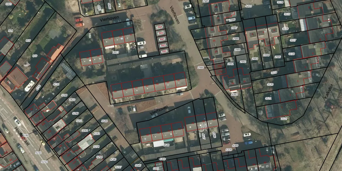 Vierhoven 56 is gelegen op kadastraal perceel THD00G2813. Deze kadastrale aanduiding is uniek en wordt gebruikt door het Kadaster om eigendomsrechten en andere zakelijke rechten vast te leggen. Het perceel maakt onderdeel uit van de kadastrale gemeente Terheijden.