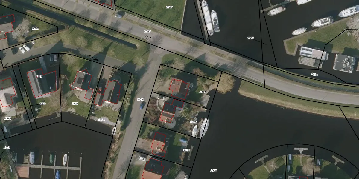 Het adres ligt op het perceel THN00-A-2414, dat zich in de kadastrale gemeente Terhorne bevindt. Het perceel is kleiner dan gemiddeld in Terhorne. Het perceel is 550 m² groot, terwijl het gemiddelde ligt op 6334,06 m². Het grootste perceel in de kadastrale gemeente is 70,6 ha. Het kleinste perceel heeft een oppervlakte van 1 m². Er zijn geen andere adressen aanwezig op het perceel. In de Basisregistratie Kadaster (BRK) werden de grenzen van het perceel geregistreerd op 15-06-2005.