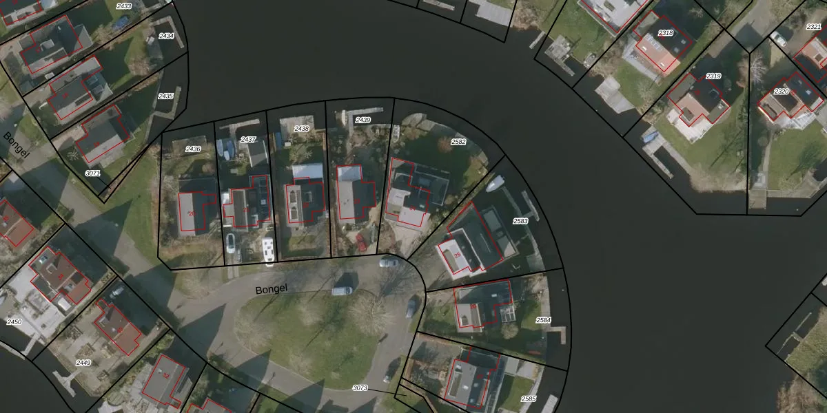 Het perceel waarop Bongel 24 staat heeft een oppervlakte van 707 m². Dit is een groot perceel. De perceeloppervlakte wordt geregistreerd door het Kadaster. Gedetailleerde informatie over de maten van dit perceel kunt u vinden in het rapport Kadastrale kaart met maatvoering van Bongel 24.