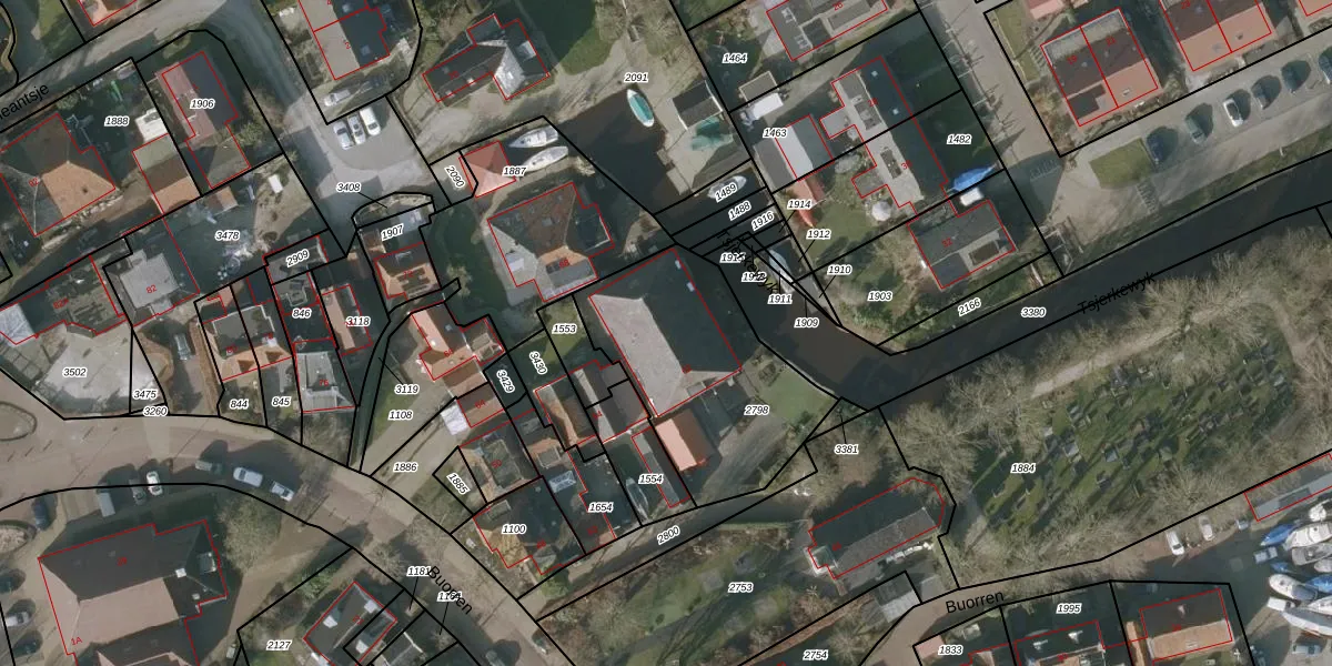 Het perceel waarop Buorren 62 staat heeft een oppervlakte van 815 m². Dit is een groot perceel. De perceeloppervlakte wordt geregistreerd door het Kadaster. Gedetailleerde informatie over de maten van dit perceel kunt u vinden in het rapport Kadastrale kaart met maatvoering van Buorren 62.
