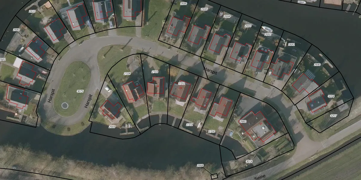 Het perceel waarop Harspit 19 staat heeft een oppervlakte van 376 m². Dit is een groot perceel. De perceeloppervlakte wordt geregistreerd door het Kadaster. Gedetailleerde informatie over de maten van dit perceel kunt u vinden in het rapport Kadastrale kaart met maatvoering van Harspit 19.