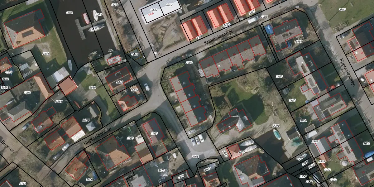 Het perceel waarop Kupersleantsje 6 staat heeft een oppervlakte van 1598 m². Dit is een zeer groot perceel. De perceeloppervlakte wordt geregistreerd door het Kadaster. Gedetailleerde informatie over de maten van dit perceel kunt u vinden in het rapport Kadastrale kaart met maatvoering van Kupersleantsje 6.