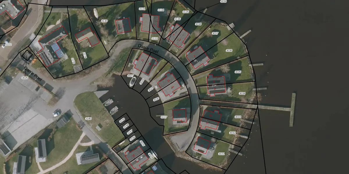 Oan'e Poel 14 is gelegen op kadastraal perceel THN00A3030. Deze kadastrale aanduiding is uniek en wordt gebruikt door het Kadaster om eigendomsrechten en andere zakelijke rechten vast te leggen. Het perceel maakt onderdeel uit van de kadastrale gemeente Terhorne.