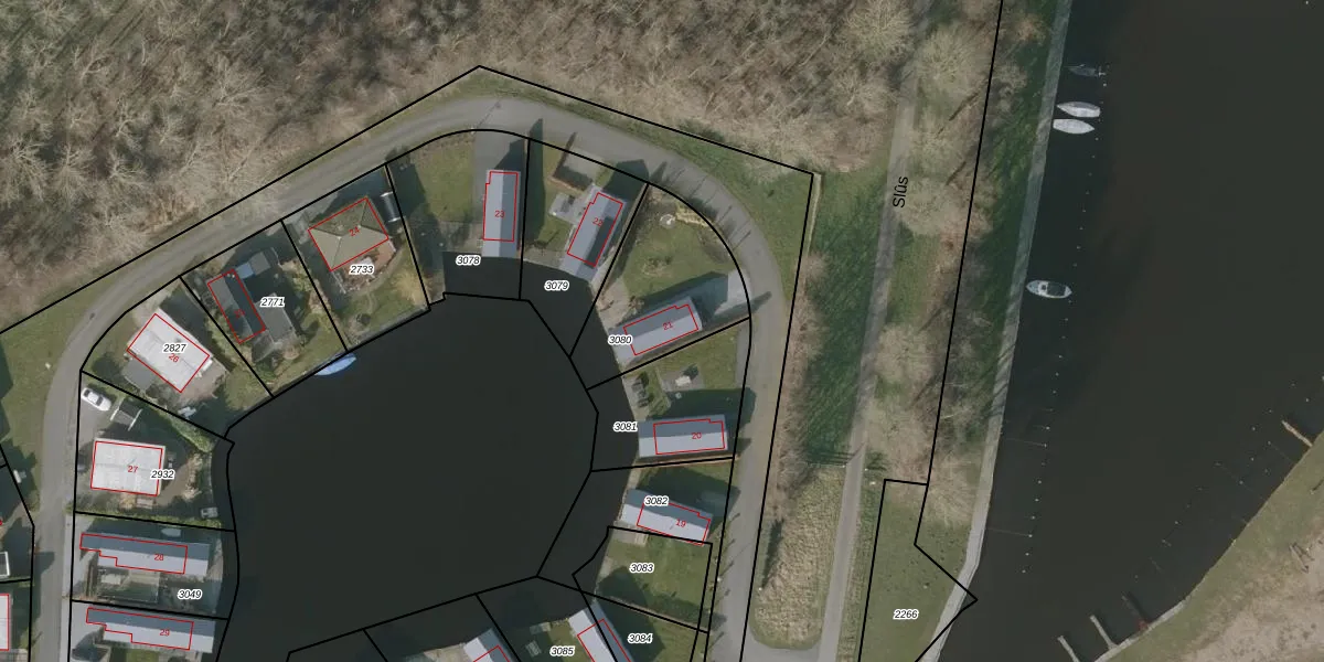 Slûs 21 is gelegen op kadastraal perceel THN00A3080. Deze kadastrale aanduiding is uniek en wordt gebruikt door het Kadaster om eigendomsrechten en andere zakelijke rechten vast te leggen. Het perceel maakt onderdeel uit van de kadastrale gemeente Terhorne.