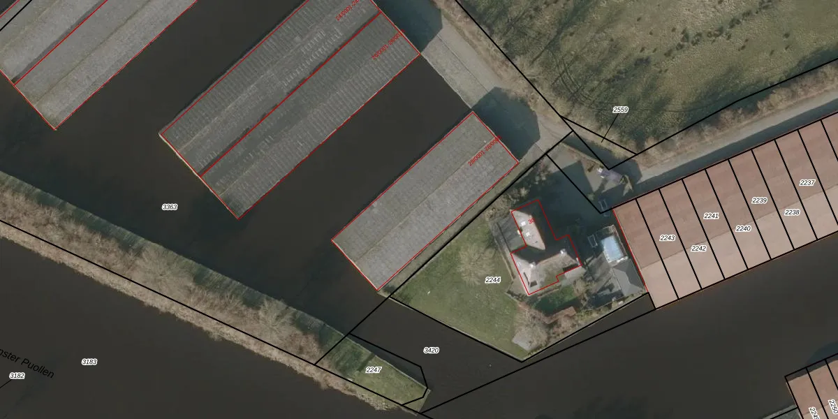 Het adres ligt op het perceel THN00-A-3363, dat zich in de kadastrale gemeente Terhorne bevindt. De oppervlakte van het perceel is 1,2 ha. Dat is groter dan gemiddeld in Terhorne, waar de gemiddelde perceeloppervlakte op 6334,06 m² ligt. De grootste perceeloppervlakte in de kadastrale gemeente is 70,6 ha. De kleinste oppervlakte bedraagt 1 m². Op het perceel liggen in totaal 62 adressen. De laatste wijziging in het de Basisregistratie Kadaster (BRK) was op 17-11-2020.
