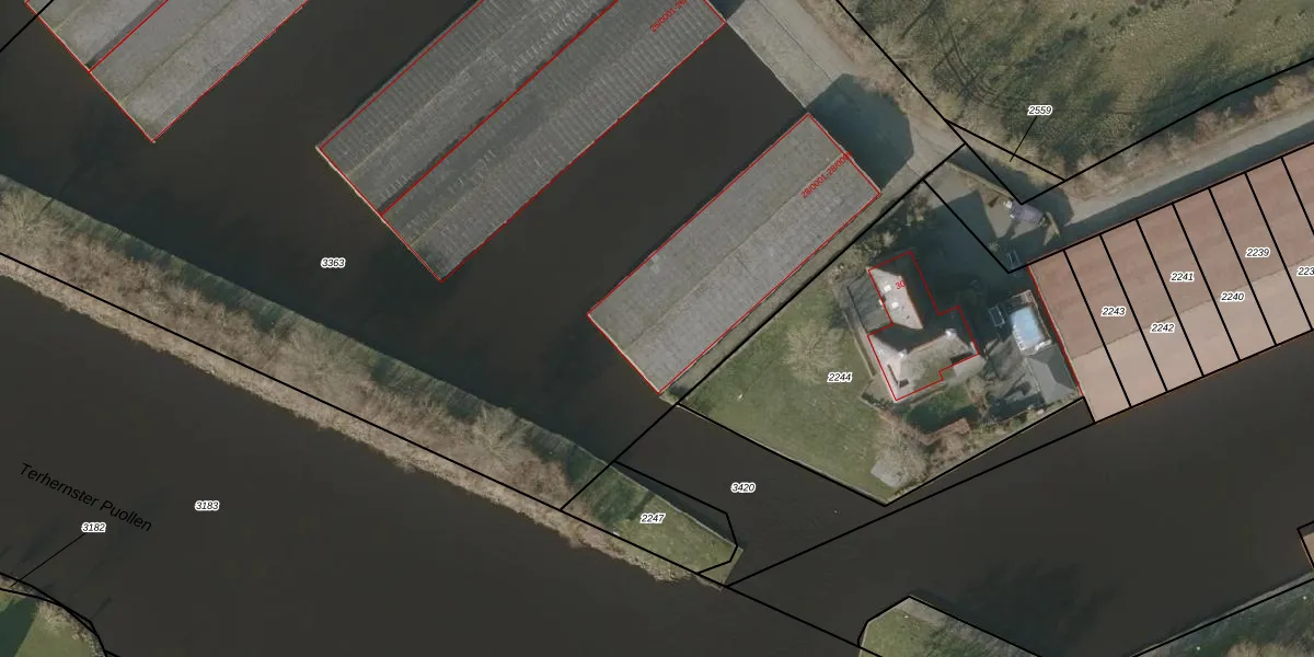 Het adres ligt op het perceel THN00-A-3363, dat zich in de kadastrale gemeente Terhorne bevindt. De oppervlakte van het perceel is 1,2 ha. Dat is groter dan gemiddeld in Terhorne, waar de gemiddelde perceeloppervlakte op 6334,06 m² ligt. De grootste perceeloppervlakte in de kadastrale gemeente is 70,6 ha. De kleinste oppervlakte bedraagt 1 m². Op het perceel liggen in totaal 62 adressen. De laatste wijziging in het de Basisregistratie Kadaster (BRK) was op 17-11-2020.