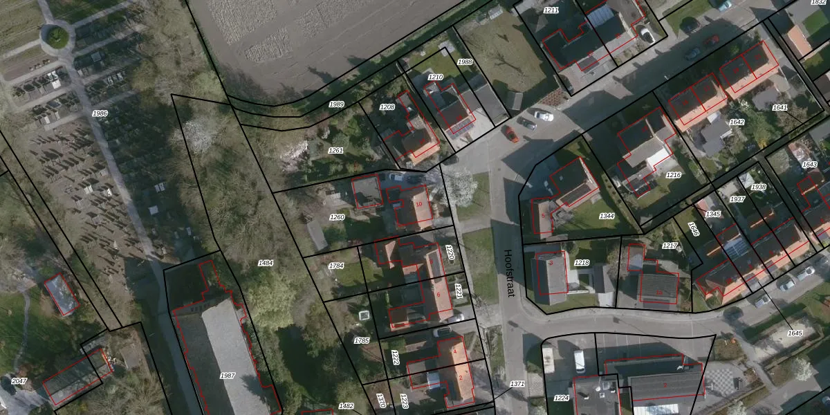 Het perceel waarop Hoofstraat 10 staat heeft een oppervlakte van 635 m². Dit is een groot perceel. De perceeloppervlakte wordt geregistreerd door het Kadaster. Gedetailleerde informatie over de maten van dit perceel kunt u vinden in het rapport Kadastrale kaart met maatvoering van Hoofstraat 10.