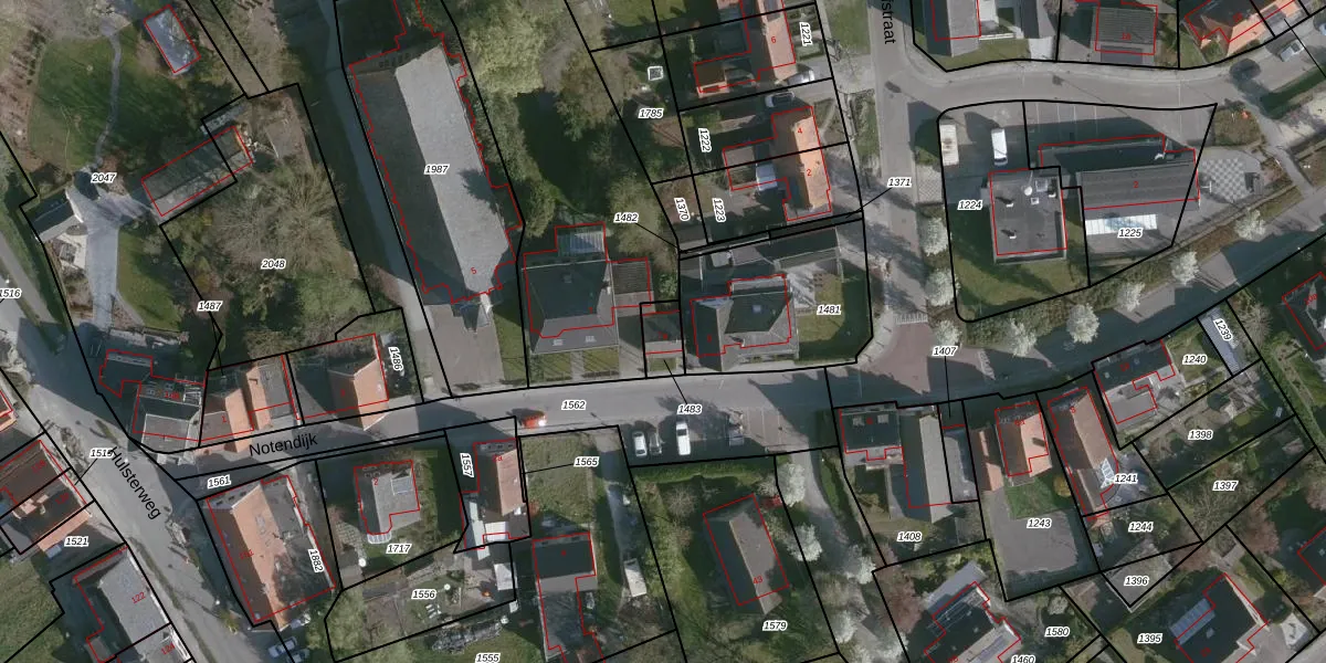 Het perceel waarop Notendijk 7-a staat heeft een oppervlakte van 69 m². Dit is een klein perceel. De perceeloppervlakte wordt geregistreerd door het Kadaster. Gedetailleerde informatie over de maten van dit perceel kunt u vinden in het rapport Kadastrale kaart met maatvoering van Notendijk 7-a.