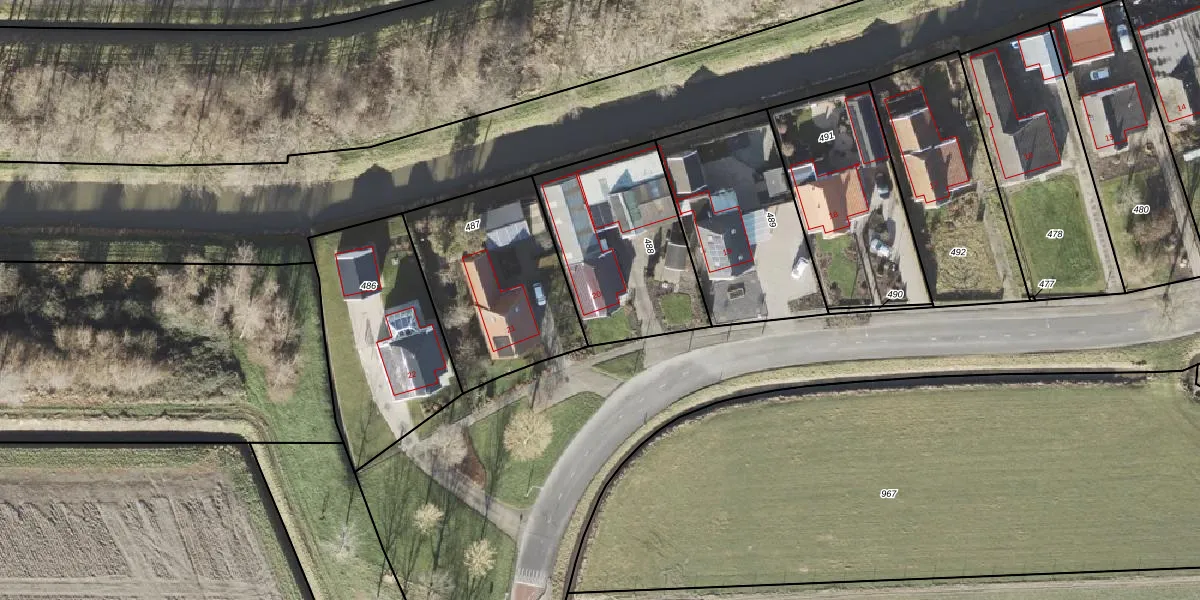 Het adres is gelegen op perceel 488 in de sectie H en de kadastrale gemeente Termunten. De kadastrale aanduiding is aldus TMT00-H-488. De gemiddelde perceelgrootte in Termunten is 1,9 ha. Dit perceel is kleiner: de perceeloppervlakte bedraagt 650 m². De grootste perceeloppervlakte in de kadastrale gemeente is 7,43 km². De kleinste oppervlakte bedraagt 0 m². Er zijn geen andere adressen aanwezig op het perceel. De huidige grenzen van het perceel zijn digitaal in de Basisregistratie Kadaster (BRK) geregistreerd op 14-11-1997.