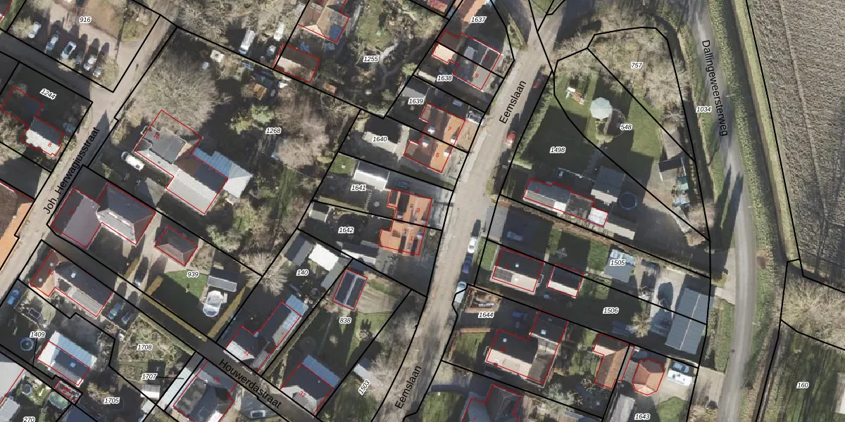 Gebruik de zoekbalk of klik op een perceel voor informatie over de adressen binnen dit perceel.
