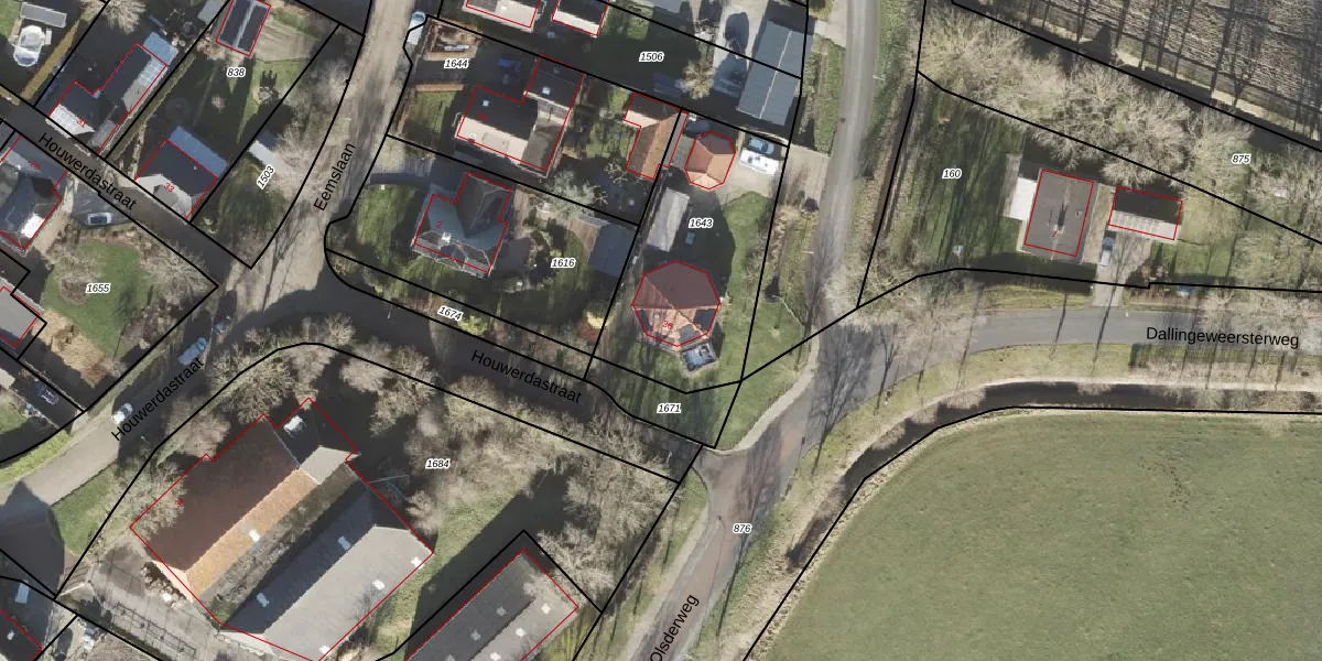 Houwerdastraat 36 is gelegen op kadastraal perceel TMT00C1643. Deze kadastrale aanduiding is uniek en wordt gebruikt door het Kadaster om eigendomsrechten en andere zakelijke rechten vast te leggen. Het perceel maakt onderdeel uit van de kadastrale gemeente Termunten.