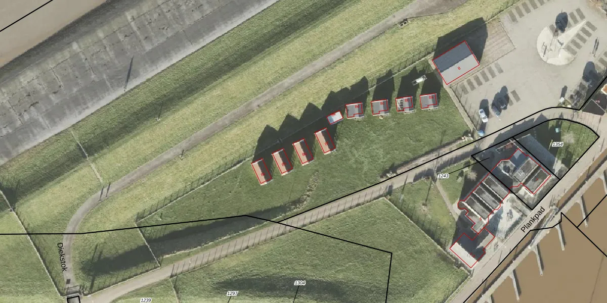 Het perceel waarop Diekstok 8-g staat heeft een oppervlakte van 11,6 ha. Dit is een zeer groot perceel. De perceeloppervlakte wordt geregistreerd door het Kadaster. Gedetailleerde informatie over de maten van dit perceel kunt u vinden in het rapport Kadastrale kaart met maatvoering van Diekstok 8-g.