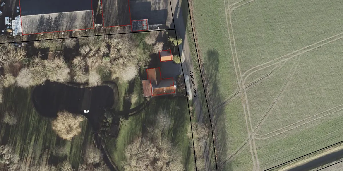 Het perceel waarop Wartumerweg 16 staat heeft een oppervlakte van 1,2 ha. Dit is een zeer groot perceel. De perceeloppervlakte wordt geregistreerd door het Kadaster. Gedetailleerde informatie over de maten van dit perceel kunt u vinden in het rapport Kadastrale kaart met maatvoering van Wartumerweg 16.
