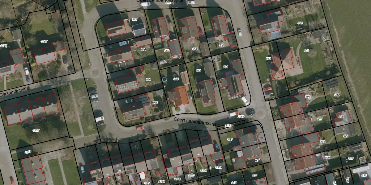 Gebruik de zoekbalk of klik op een perceel voor informatie over de adressen binnen dit perceel.