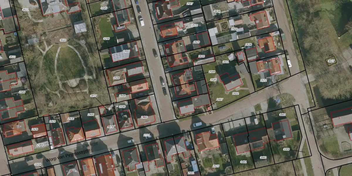 Gebruik de zoekbalk of klik op een perceel voor informatie over de adressen binnen dit perceel.