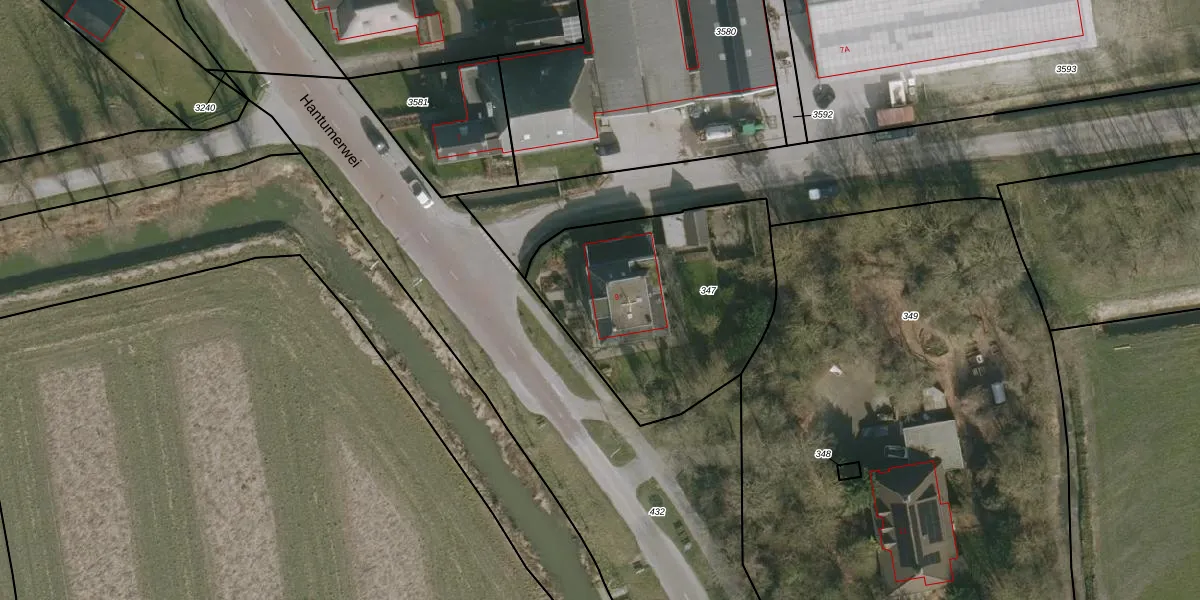 Hantumerwei 9 is gelegen op kadastraal perceel TND00G347. Deze kadastrale aanduiding is uniek en wordt gebruikt door het Kadaster om eigendomsrechten en andere zakelijke rechten vast te leggen. Het perceel maakt onderdeel uit van de kadastrale gemeente Ternaard.