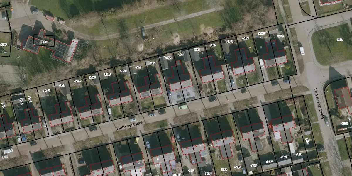 Gebruik de zoekbalk of klik op een perceel voor informatie over de adressen binnen dit perceel.