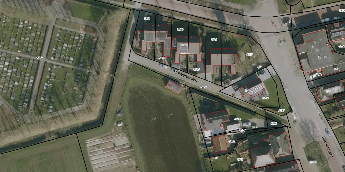 Het perceel waarop Holwerterdyk 11-B staat heeft een oppervlakte van 8190 m². Dit is een zeer groot perceel. De perceeloppervlakte wordt geregistreerd door het Kadaster. Gedetailleerde informatie over de maten van dit perceel kunt u vinden in het rapport Kadastrale kaart met maatvoering van Holwerterdyk 11-B.