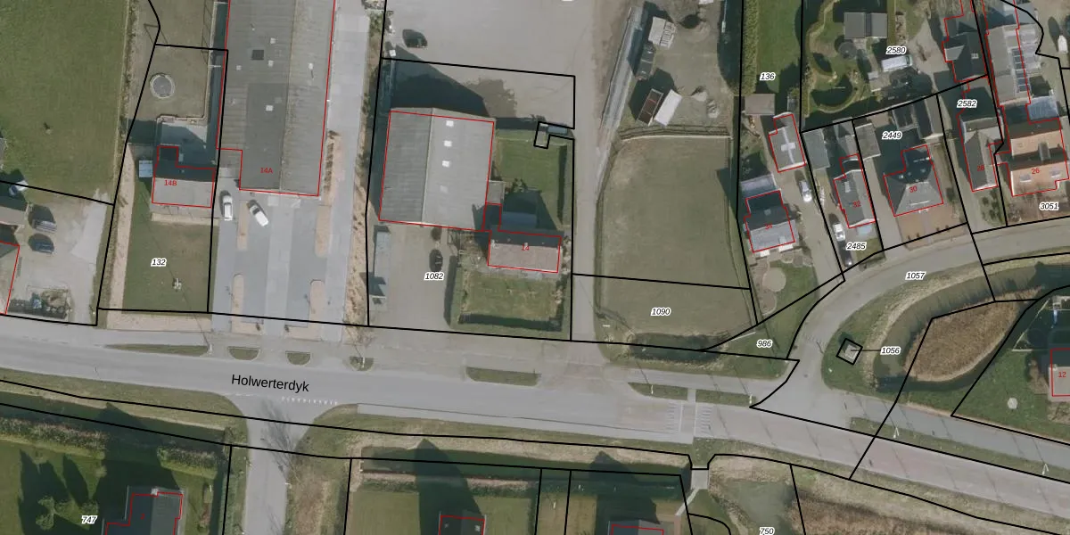 Het perceel waarop Holwerterdyk 14 staat heeft een oppervlakte van 1900 m². Dit is een zeer groot perceel. De perceeloppervlakte wordt geregistreerd door het Kadaster. Gedetailleerde informatie over de maten van dit perceel kunt u vinden in het rapport Kadastrale kaart met maatvoering van Holwerterdyk 14.