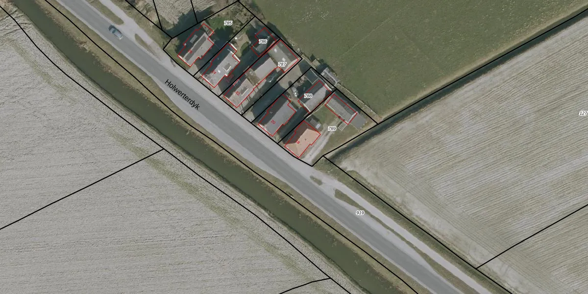 Holwerterdyk 18 is gelegen op kadastraal perceel TND00G789. Deze kadastrale aanduiding is uniek en wordt gebruikt door het Kadaster om eigendomsrechten en andere zakelijke rechten vast te leggen. Het perceel maakt onderdeel uit van de kadastrale gemeente Ternaard.