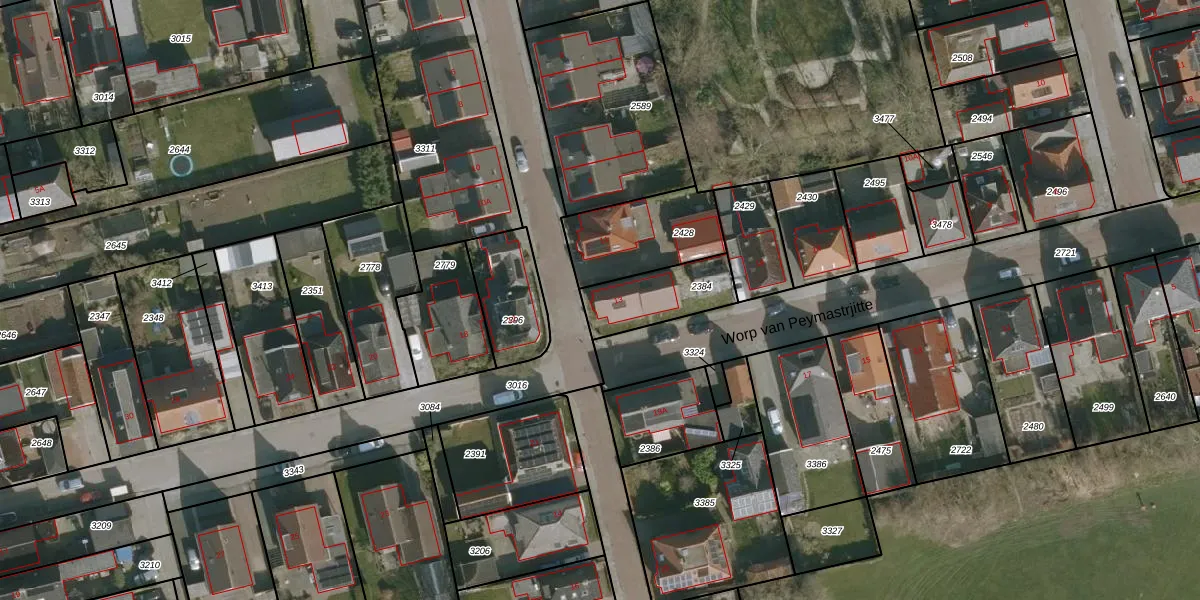 Gebruik de zoekbalk of klik op een perceel voor informatie over de adressen binnen dit perceel.