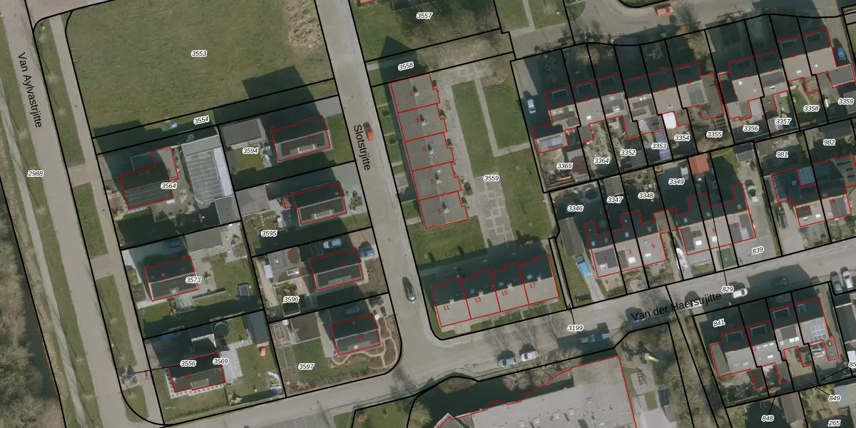 Het perceel waarop Slotstrjitte 9 staat heeft een oppervlakte van 2035 m². Dit is een zeer groot perceel. De perceeloppervlakte wordt geregistreerd door het Kadaster. Gedetailleerde informatie over de maten van dit perceel kunt u vinden in het rapport Kadastrale kaart met maatvoering van Slotstrjitte 9.