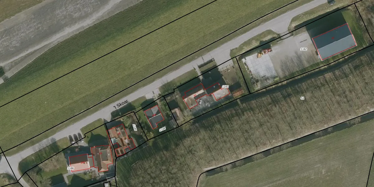Het perceel waarop 't Skoar 30 staat heeft een oppervlakte van 915 m². Dit is een groot perceel. De perceeloppervlakte wordt geregistreerd door het Kadaster. Gedetailleerde informatie over de maten van dit perceel kunt u vinden in het rapport Kadastrale kaart met maatvoering van 't Skoar 30.